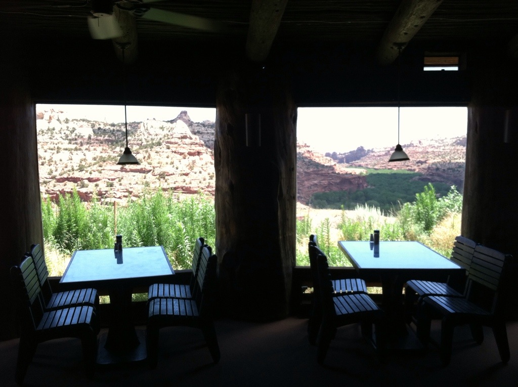 Had a relaxing morning. Wound up in the hot tub on the edge of a bird sanctuary. Then packed the car and walked to Hell’s Backbone Grill. My father and I stumbled upon this restaurant several years ago by accident. We both were shocked at how good our breakfast was in such a remote location. I vowed then that I would return for another breakfast there. (In fact, the meal here was one of the first things on my to do/see list when planning this adventure.) The picture will have to do, but cannot convey how delicious it was. The mug was kindly cleaned out and will be used quite often in my new apartment in the fall.