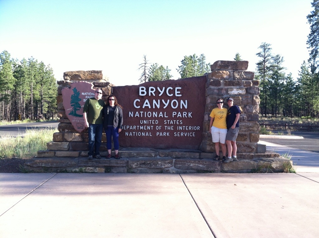 Checked in at Ruby’s Inn. (This was my first reservation made when planning this trip. I made it on December 3rd!) After a bit of relaxing, we drove to Bryce Canyon with Leslie and Laurie for a “trail dinner” overlooking the Bryce Ampitheater. We had many laughs and it was great for catching up and sharing stories. The evening was perfect. A cool breeze accompanied the setting sun.