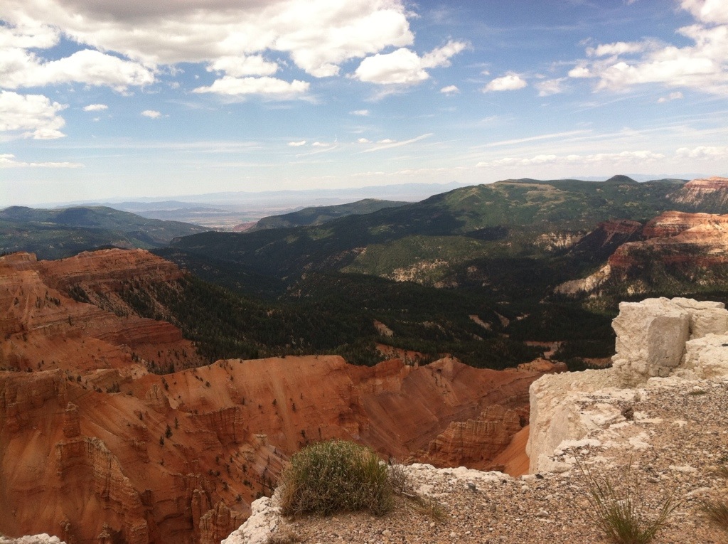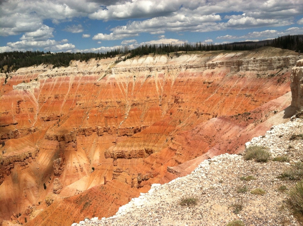 After the race, Ali and I relaxed a bit while I did laundry. We went to visit Barbara at the Bryce Canyon Trading Post. (More about that later.) Barbara showed me a poster of Cedar Breaks NM while there. When we drove away we saw a sign for the park. We both agreed it could be fun to go if it was no more than 30 miles away. The next posted sign said it was 29 miles away. It was meant to be. The monument had a similar feel to Bryce Canyon, but was distinctly its own at the same time. We spent about an hour stopping at a few observation points.