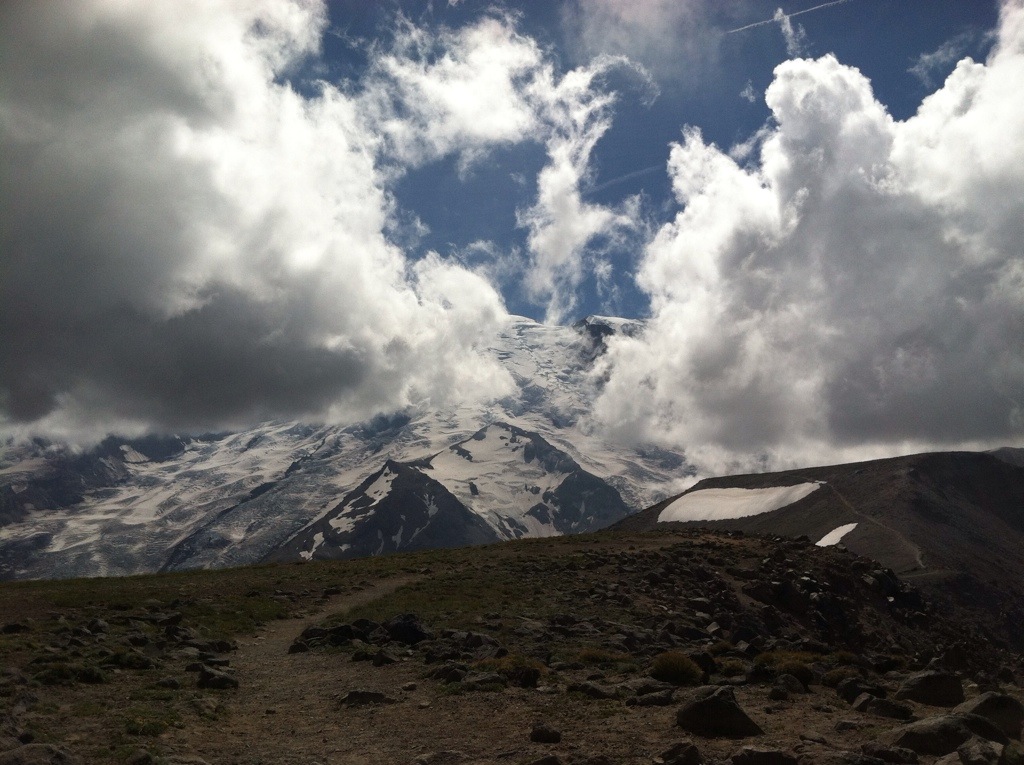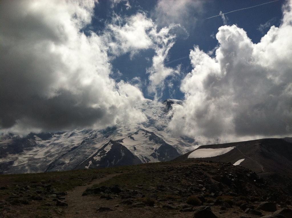 I left Seattle around 10:45 in the morning. The drive to Mt. Rainier NP wasn’t as long as I expected. After walking around the Sunrise Visitor Center and talking to a very nice person behind the desk, I grabbed a quick lunch before hitting the trails. I originally thought that I would do a short 1 mile hike, but I kept thinking that I wanted to go farther. Before I knew it, I had gained 1,200 feet of vertical elevation and was setting myself up for a 5+ mile hike. That’s when I decided to turn around. The cloud cover made for some very dramatic sights and photos. (Although the cloud free view of Mt. Rainier from the Space Needle was impressive.)