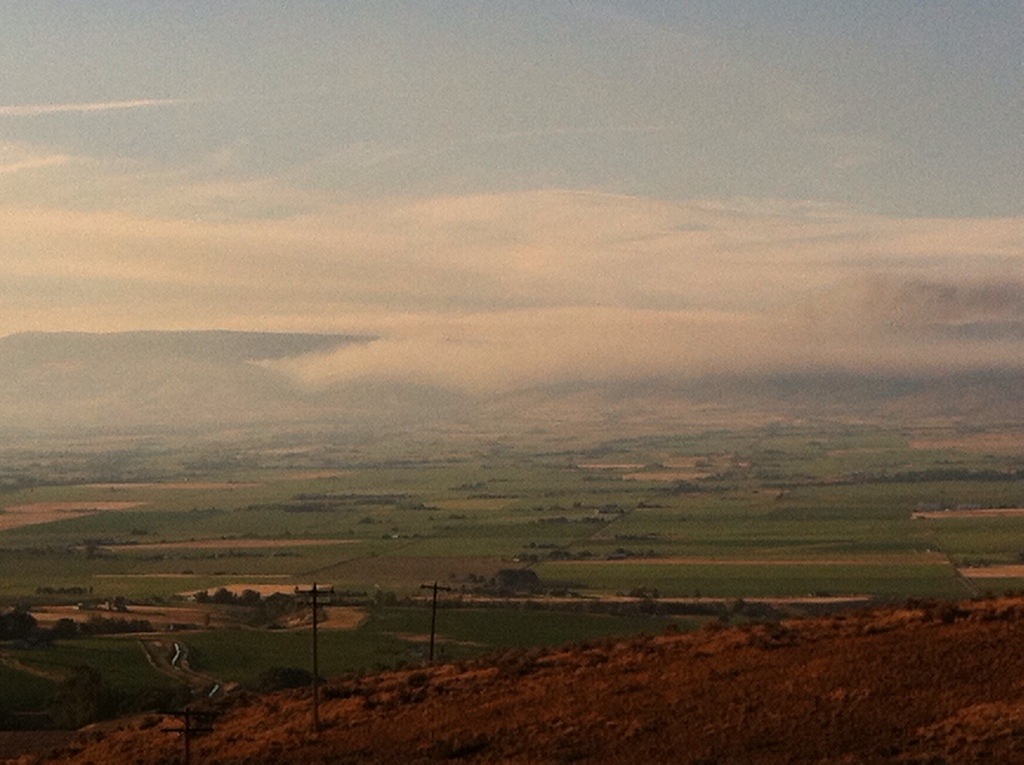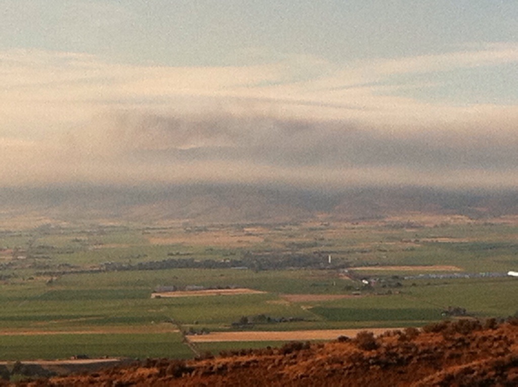 I got back to my car around 4:45, and set off towards Ellensburg. I’ve been calling the past few days to make sure the campground hasn’t closed. The fires in the region have been extremely hard to contain. After driving a few hours in the car, I decided to turn off to a viewpoint only a few miles out. As soon as I rounded the bend, I could see where the fires are burning strong. It was actually shocking to see how close they are to the valley floor and the city below. Very scary.