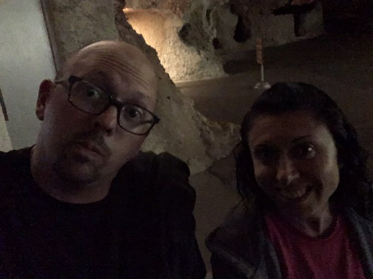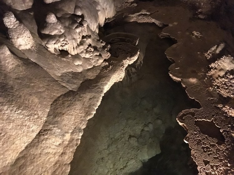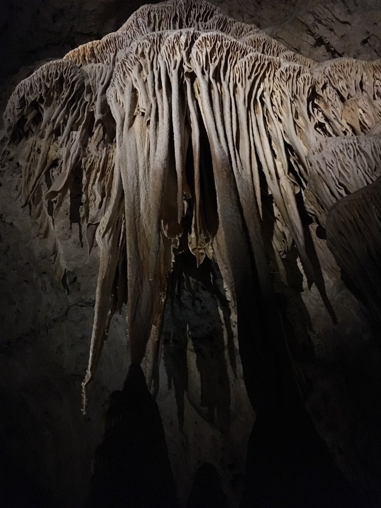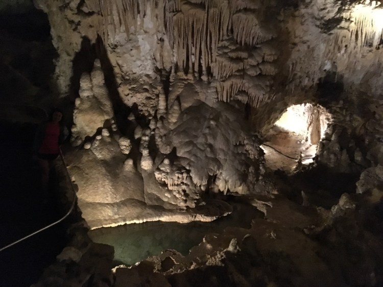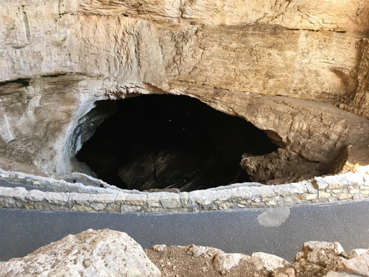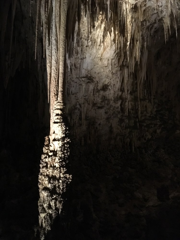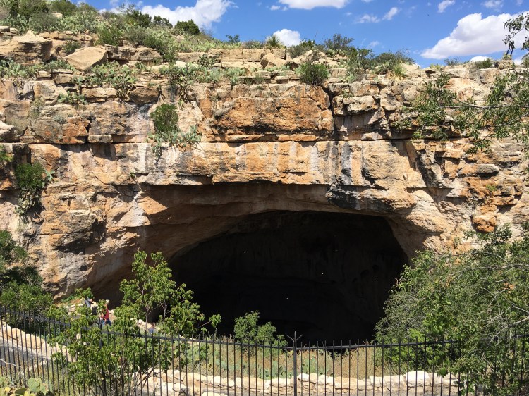 When we arrived at Carlsbad Caverns, we showed our Park pass to get tickets for the self guided tour.   I wasn’t exactly sure how different the cave would be compared to Mammoth Caves.  Although there were some similarities, Carlsbad Caverns was much grander and jaw-dropping.  The beginning part of the hike was walking past the amphitheater where we planned on watching the bat flight in a few hours.  From there, we could see the natural opening to the cave.  Birds were flying all around and diving into the cave around this point.  Despite some very close calls, no cave swallows managed to successfully target us with their droppings.  The cave immediately required us to descend into it using the very many switchbacks.  The railings proved useful, as many parts were slippery.  Honestly, the cave seemed to never end as we made our way towards the 750 foot mark that we would eventually reach.  The photos below simply do not do any real justice to the magnificence of the caverns.  At some points, the size of the open space was equivalent to several Madison Square Gardens combined!  (No joke!)  Overall, it took us nearly two hours to hike to bottom and complete the mile loop around the Big Room portion of the cave.