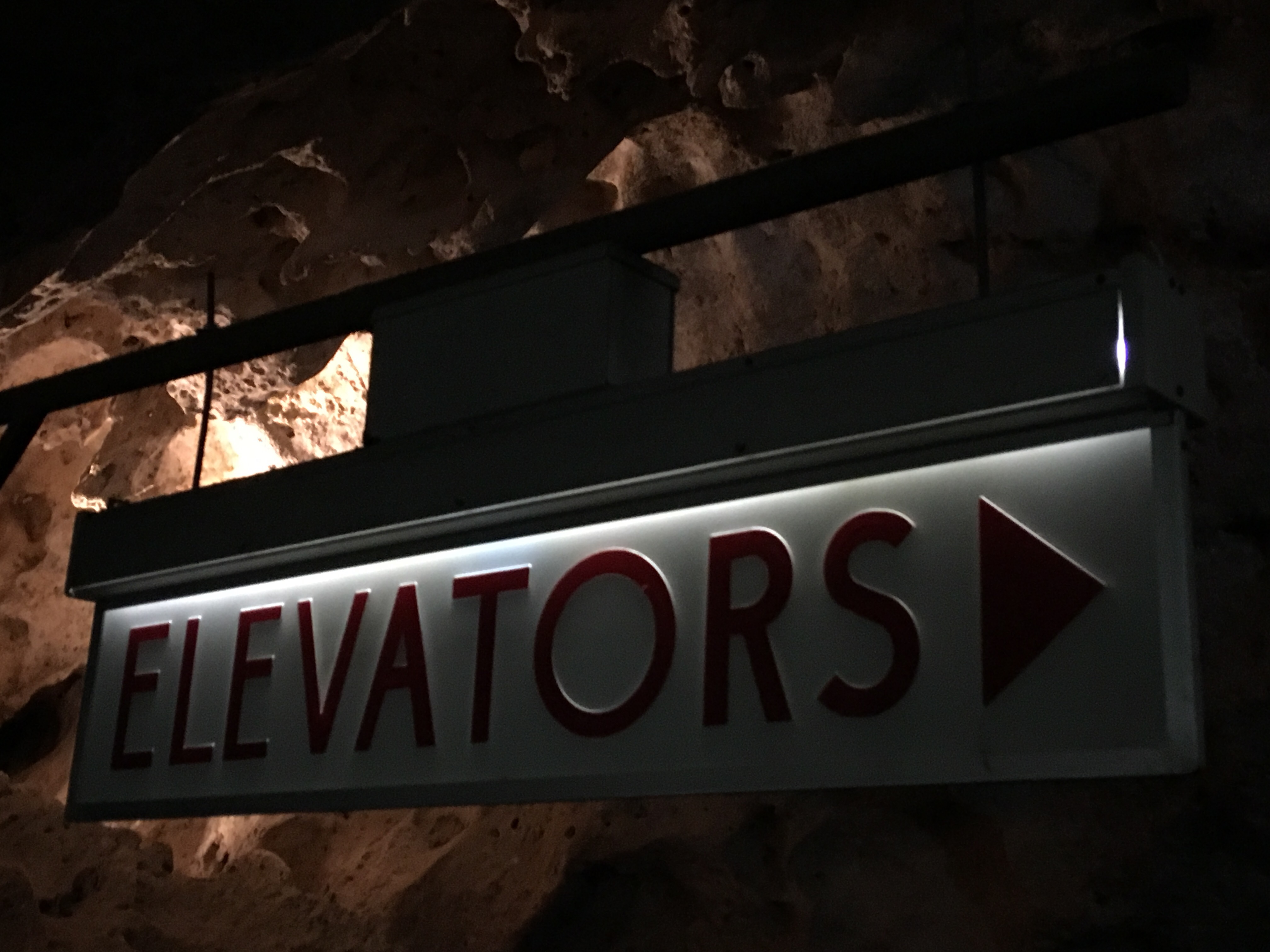 By the time we reached the end, we had passed many people who were hiking back out.  They were clearly having a hard time breathing and functioning.  Therefore, we decided that waiting the 45 minutes for the elevator ride back to the top was the wisest course of action.  (Note:  the elevator was installed in the 1930’s and takes 58 seconds to return to the top.)