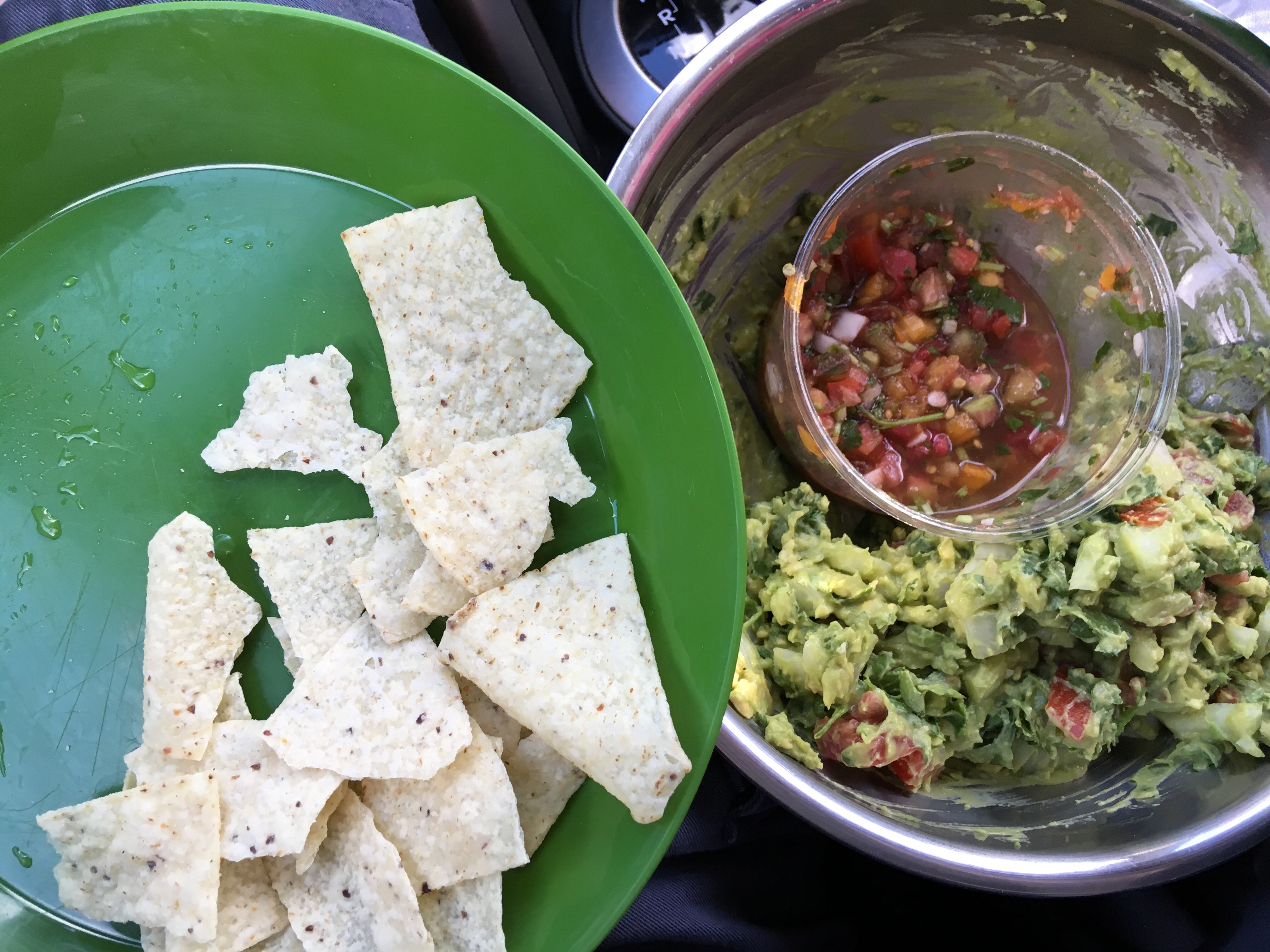 Back in my car, we prepared our dinner.  I’m getting much better at making “car guacamole” with success, after having practiced the skill at Red Rocks two years ago.  The trick is to cut everything but the avocados earlier and keep the parts in separate bags.