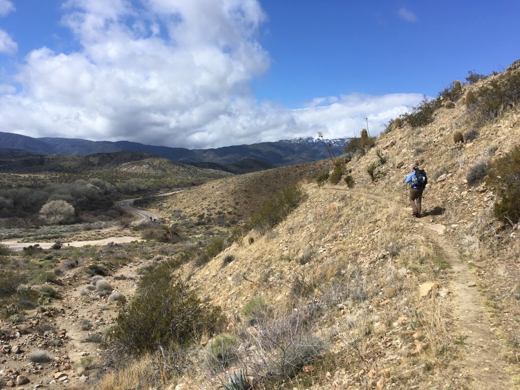 Ian: When I met Ian on the trail, his Scottish accent was noticeably familiar. Although my visit to Scotland was brief when I was in high school, those few days live vividly in my memories. Ian hadn’t lived in Scotland for many, many years, but his accent was clearly a permanent quality unchanged from living in Texas for a significant portion of his adult life. Ian and I spoke about his retirement and my leave of absence from teaching in the first few minutes after meeting. The concepts of freedom and possibilities were a common theme during our chat. After some time, Ian hiked on. When I stumbled down the dirt road and arrived at the Cibbets Flat campground, the place was eerily empty. The lone occupant was a familiar face. Ian offered me a corner of his campsite that he had already paid for not long before. (I had the opportunity to repay him with beer in Julian.) Once I set up my tent, we both prepared our dinner and chatted about our gear selections. Ian had very light equipment. My belongings were on the heavier side of the gear spectrum, and we had some good laughs. My decision to carry a small one-ounce packet of Epsom salts with me for my first indoor stop was almost too much for Ian. Although I passed on the suggestion, Ian offered up the trail name “Green Giant,” as a nod to my pack and gear. (Two days later, I was inspired to “bounce” a box of gear ahead, reducing the base weight of my pack by over a pound.) After seeing Ian in Mount Laguna, we were able to catch up in greater depth in Julian, where we experienced the famous hiker welcome at Mom’s Pie House and moved on to pizza and beer at the Julian Beer Company. When the PCTA asked us the leave the trail, Ian decided to remain until the request became a demand. As it never did, Ian was able to successfully complete his thru hike this past fall. It would be a blast to meet up with Ian again, should our paths be in close proximity at some point. “Cheers, mate.”